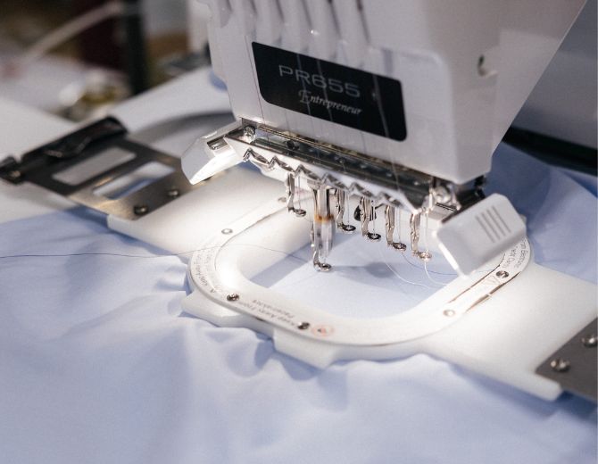 Une broderie mal centrée ou mal stabilisée peut déformer le tissu. Chez C2S, cette étape est réalisée avec une extrême vigilance. Car dans la confection, le détail n’est jamais secondaire.